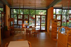 In unserem Haus gibt es vier großzügig gestaltete Gruppenbereiche mit einem zentralen Gruppenraum, einem Nebenraum, Waschraum und Garderobe. Dazu gibt es die Küche sowie einen Mehrzweckraum und zentral unsere Rotunde, mit eigener Bühne. Dies ist der Mittelpunkt unseres Kindergartens - hier ist Platz zum Treffen, sich Bewegen oder auch zum gemeinsamen Singen und Feiern.