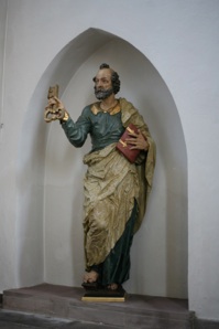 Am hinteren linken Achteckpfeiler der Kirche befindet sich heute ein barockes Kruzifix, das um 1720 entstanden ist.